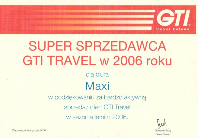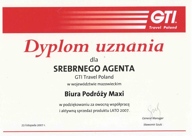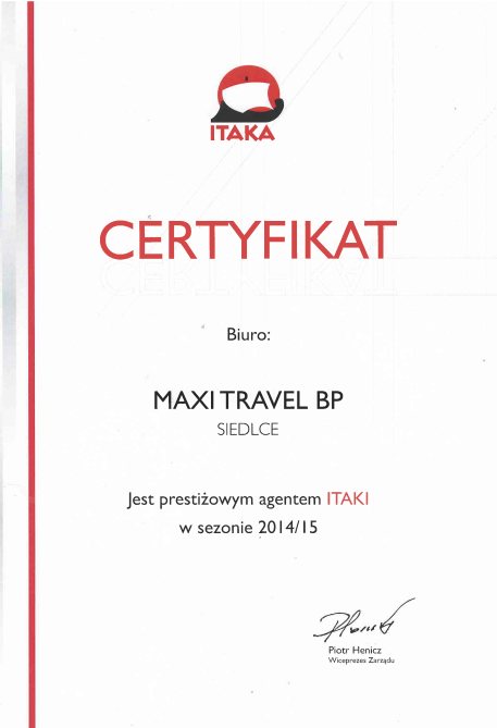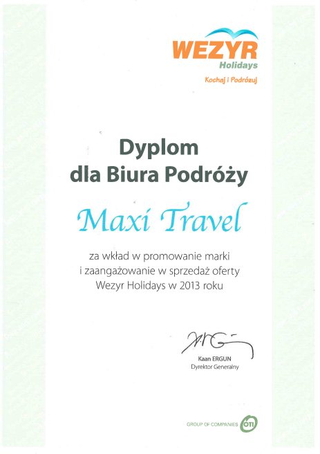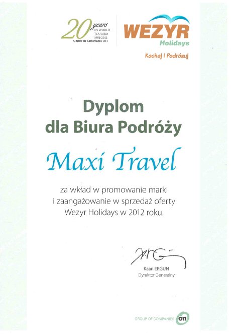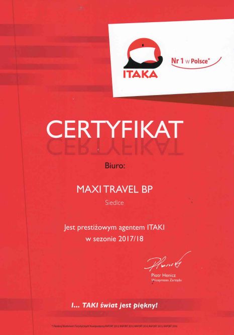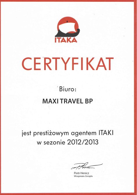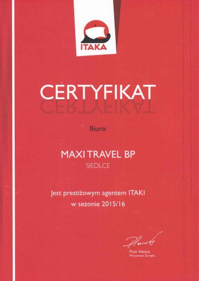 Oferta którą posiadamy pochodzi z baz sprawdzonych organizatorów, którzy mają odpowiednie zezwolenia, koncesje i certyfikaty do prowadzenia działalności turystycznej. Proponujemy zarówno wyjazdy indywidualne, grupowe, organizujemy również wszelkiego rodzaju wyjazdy firmowe typu Incentive. Kupując wybraną imprezę u nas, zapłacicie Państwo dokładnie tyle samo, co kupując ją bezpośrednio u organizatora. Ale my dajemy Państwu coś więcej. Dajemy ogromny wybór spośród kilkunastu tysięcy imprez dostępnych na stronie internetowej www.maxitravel.pl.