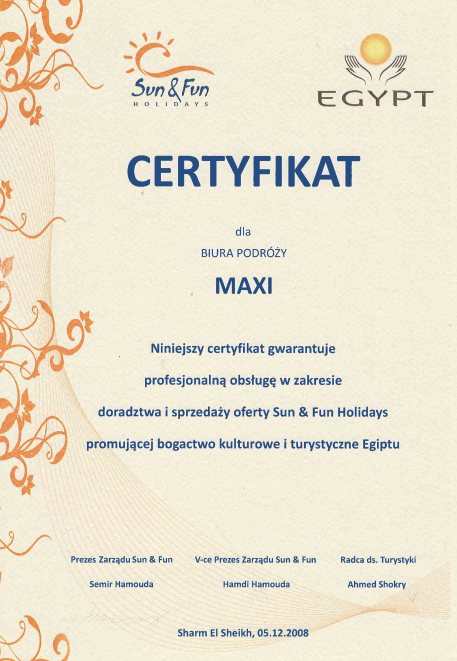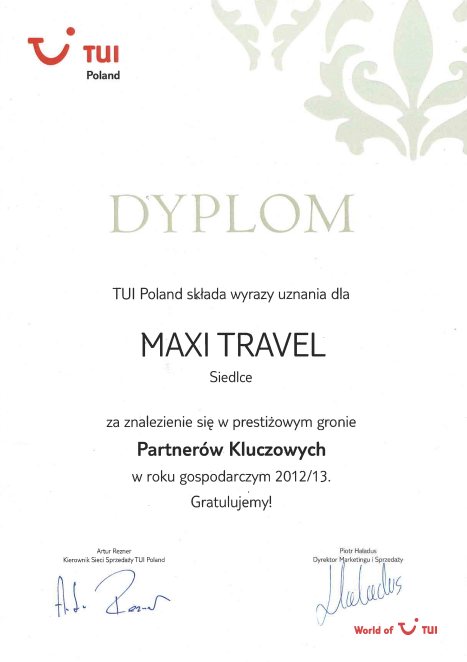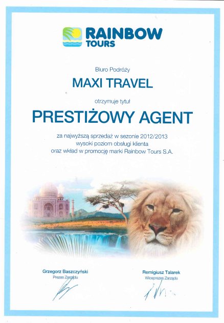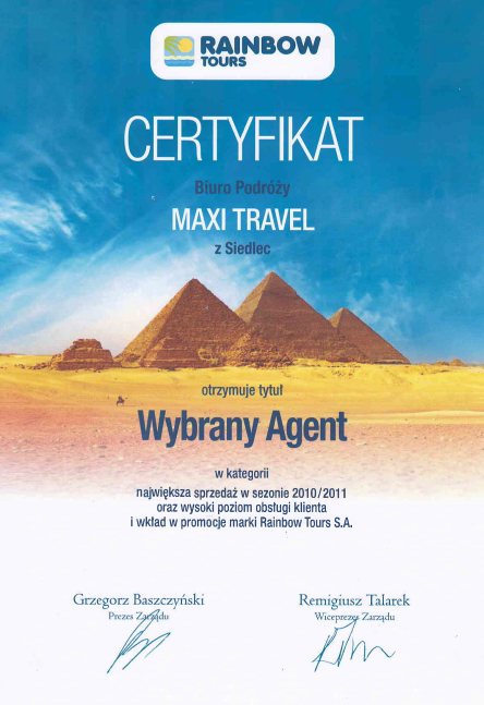 Posiadamy wyróżnienia i nagrody takich biur jak: Rainbow Tours, CORAL TRAVEL, SUN FUN