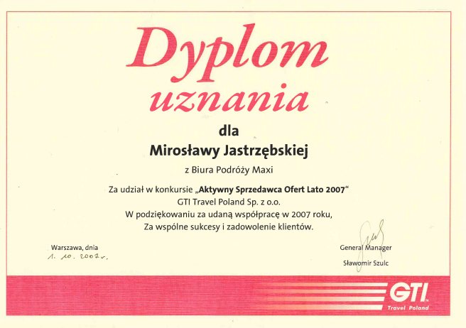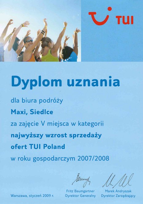 Rocznie zdobywamy wiele nagród i wyróżnień za jakość usług oraz największą sprzedaż wycieczek czarterowych w naszym regionie.